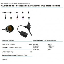 Guirnalda de 10 casquillos E27 Exterior IP65 cable eléctrico