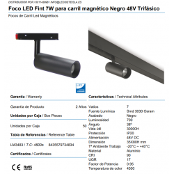 Foco LED Fint 7W para carril magnético Negro 48V Trifásico
