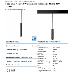Foco LED Nalaya 8W para carril magnético Negro 48V Trifásico
