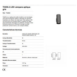 THON-2 APLIQUE GRIS OSCURO LED 2L 30W 3000K 18°