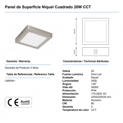 Panel de Superficie Niquel Cuadrado 20W CCT