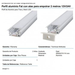 Perfil aluminio Fat con alas para empotrar 2 metros 12V/24V
