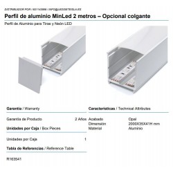 Perfil de aluminio MinLed 2 metros – Opcional colgante